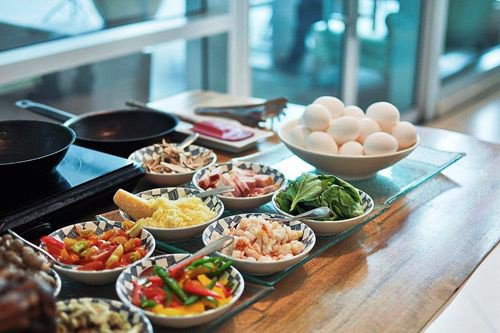 Start the Day strong with our Networking Breakfast, fresh juices, and omelette station!